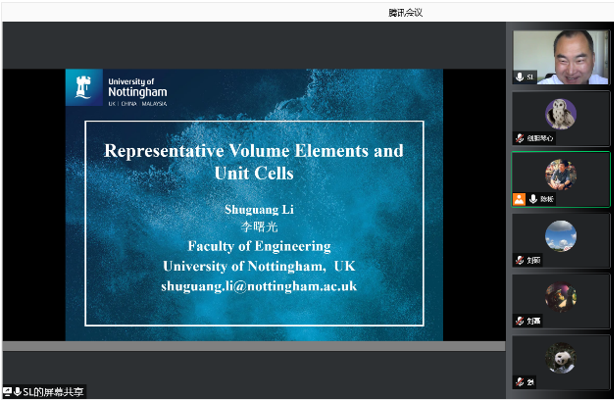 张超教授邀请,英国诺丁汉大学李曙光教授于2021年8月5日至25日开展了题为“Representative Volume Element and Unit Cells”的暑期线上专题班。本次课程的组织依托结构力学行为科学与技术创新引智基地、冲击动力学及其工程应用国际联合研究中心和陕西省冲击动力学及其工程应用重点实验室等科研平台举办,来自小说色情