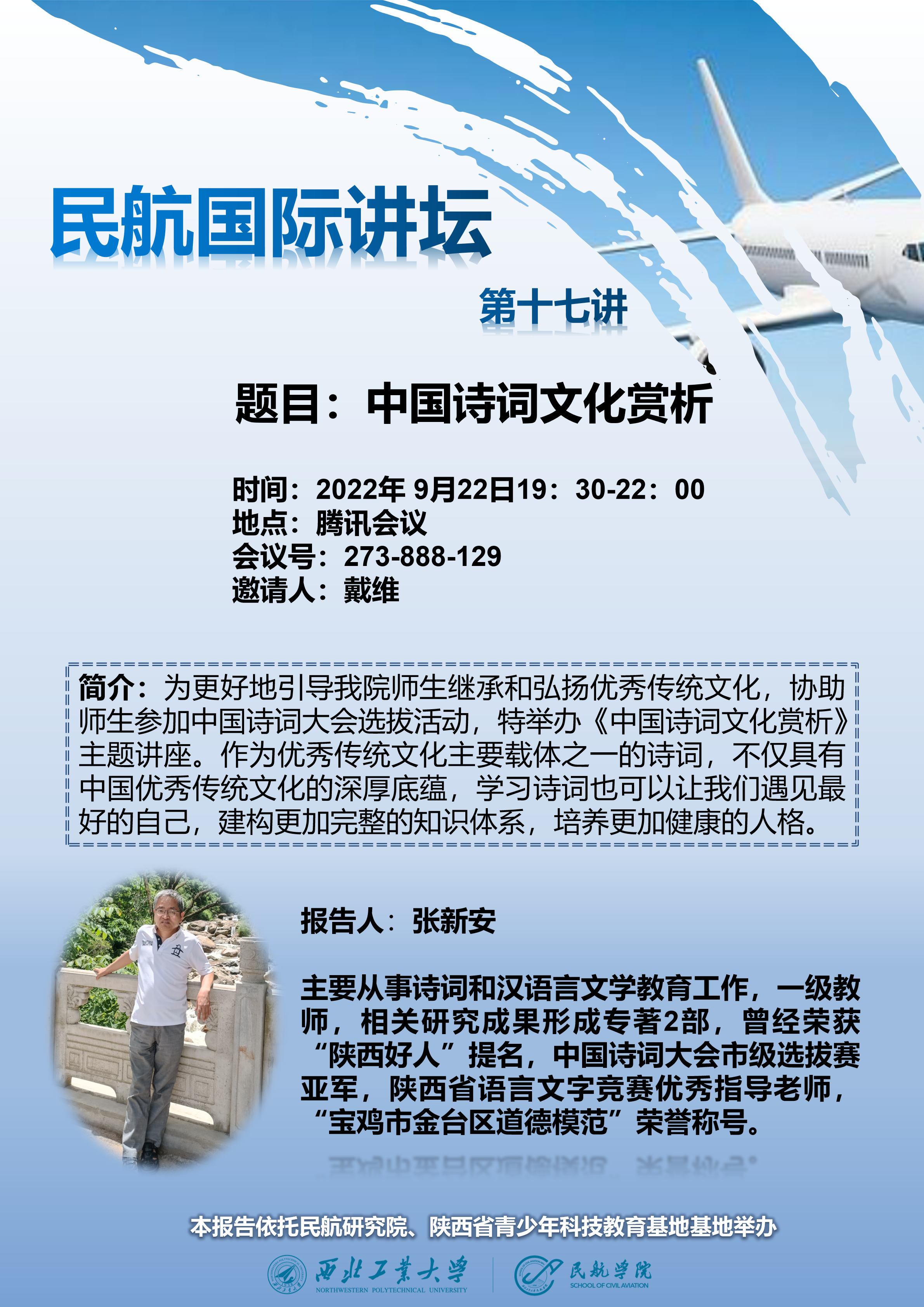 9月22日晚七点三十分,小说色情 拟线上举办“中国诗词文化赏析”专题讲座,届时欢迎各位老师同学参会交流。讲座信息如下: