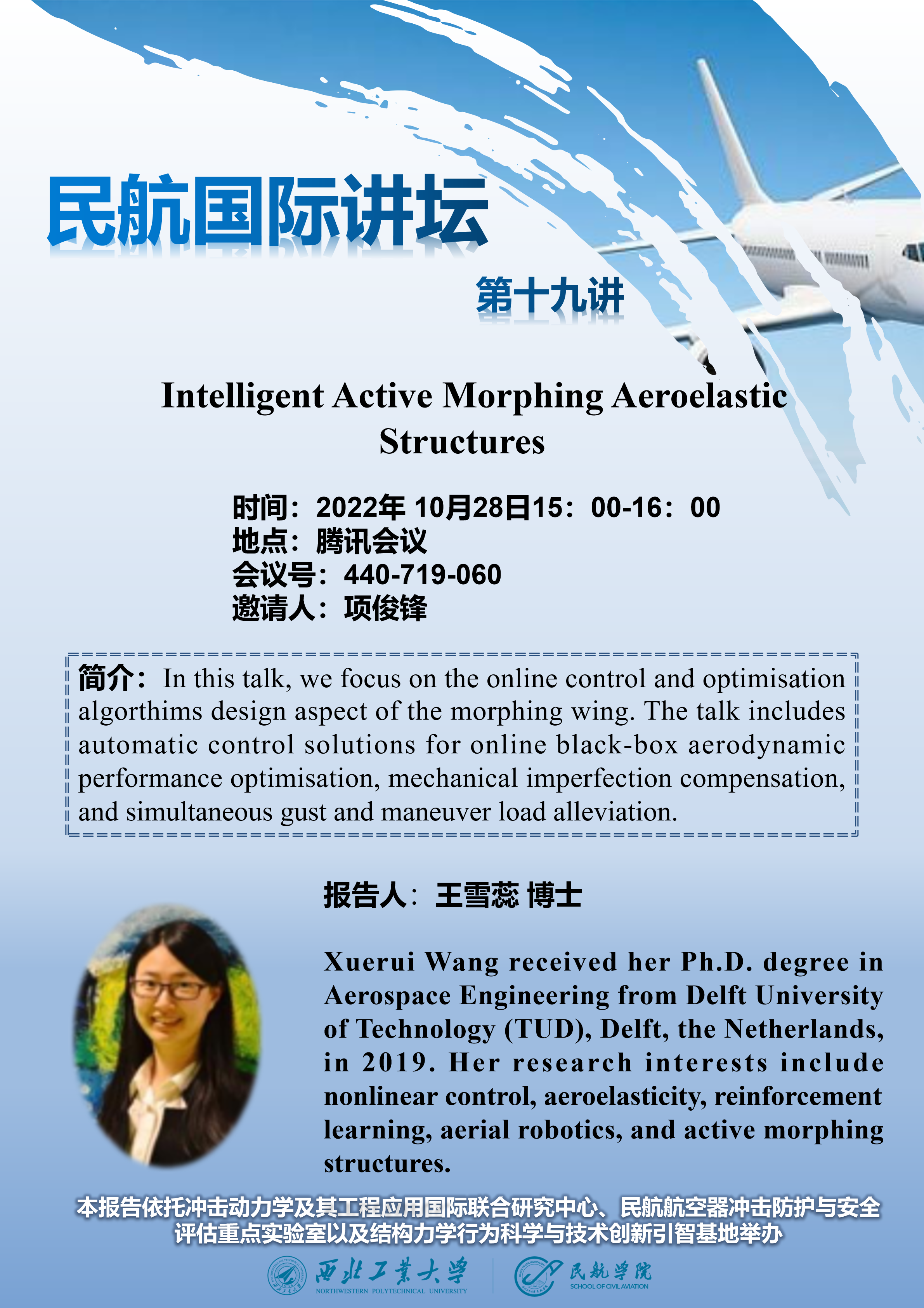 10月28号下午三点,小说色情 拟线上举办“Intelligent Active Morphing Aeroelastic Structures”专题讲座,届时欢迎各位老师同学参会交流。以下是讲座详细信息: