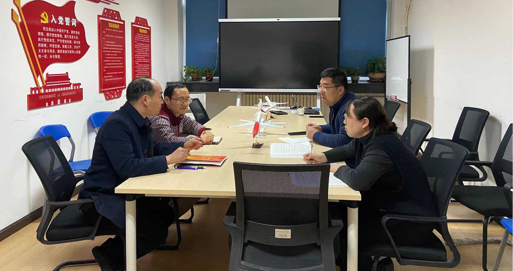 参会各支部组织委员按照要求对教师党支部、民航研究院党支部和机关党支部的活动记录表开展了第四季度交叉检查,并对发现的具体问题开展了讨论,并对各自在日常支部活动组织,活动记录本撰写中的经验和心得进行了交流。易主任指出了各支部在党史学习主题生活会理解上的偏差,并对具体记录工作进行了指导。