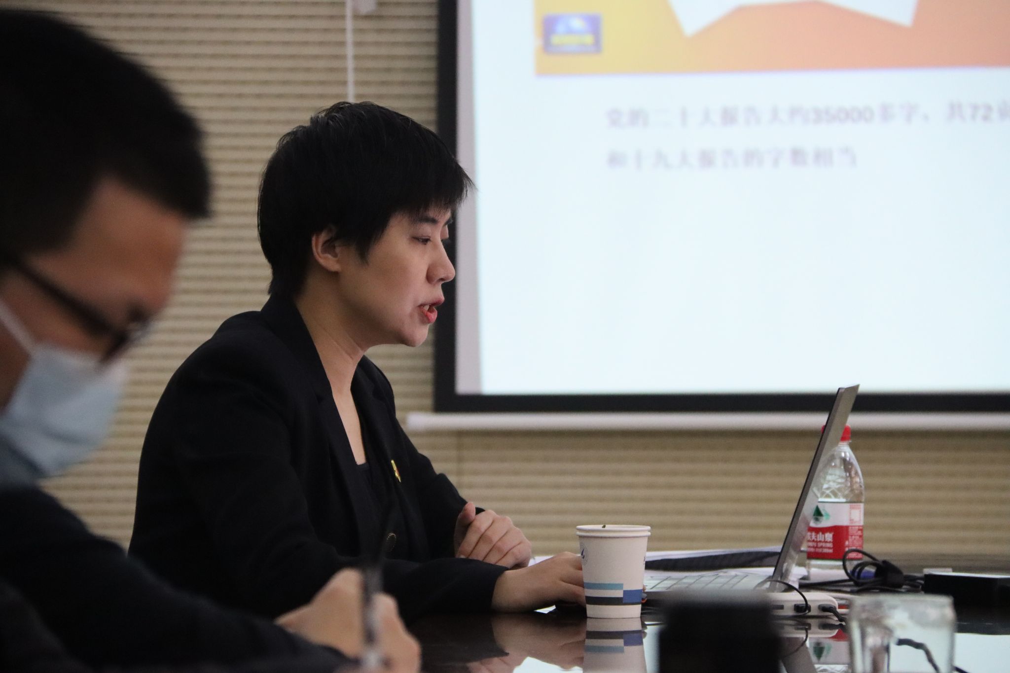 党总支邀请学校党的二十大精神宣讲团成员、马克思主义学院贺苗副教授进行“深入学习党的二十大精神”的宣讲活动。本次宣讲在友谊校区毅字楼218会议室设置主会场、毅字楼205会议室和太仓智汇港设置分会场,学院党总支理论学习中心组成员、党支部书记、全体师生党员通过线上线下结合的形式参加了宣讲会,会议由学院党总支副书记(主持工作)闫伟主持。