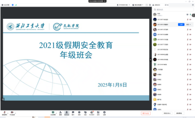 党总支副书记、专职辅导员、班主任和学生导师采用线上线下结合的形式,分批次面向本科生和研究生召开了寒假安全教育工作会议。