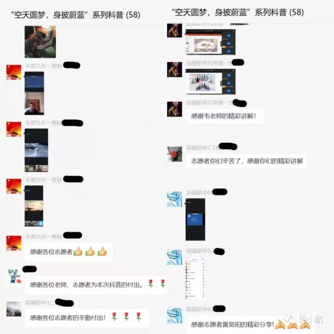 经过几周的准备,2020年4月3日下午,蓝堂的“主播”们通过QQ群直播的方式给崇凝初级中学和丰原镇九年一贯制学校的孩子们进行了航空科普。在这次志愿活动中,也活跃着小说色情