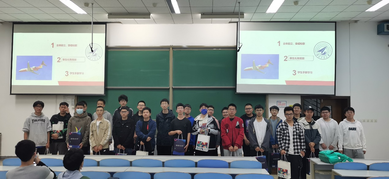 首先,袁源代表学院领导班子,向各宿舍的新生代表发放了入学礼物,包括反映我国大飞机工业发展历程的《一个国家的起飞——中国商用飞机的生死突围》、反映陕西深厚历史文化底蕴的《话说陕西》和《藏着的关中》,以及跳绳、乒乓球拍和毽子等等体育锻炼器材。袁源希望同学们在学习的同时,要广泛涉猎各方面,多读书,读好书,让书香与大学生活一路相伴;同时要勤于锻炼,强健体魄,争取为祖国健康工作五十年,幸福生活一辈子。