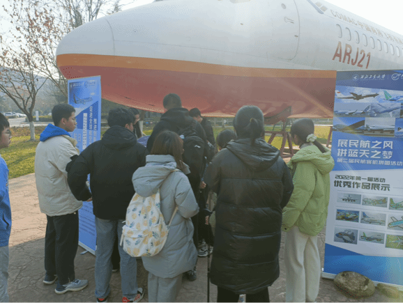 12月9日,志愿者们在长安校区的ARJ21广场布置了活动外场。同学们热情高涨,纷纷来到活动现场拍照打卡。同学们通过抽签转盘,与某一机型产生奇妙的缘分,利用信息卡与明信片或自行查找资料,进行机型的拼图设计与组装。