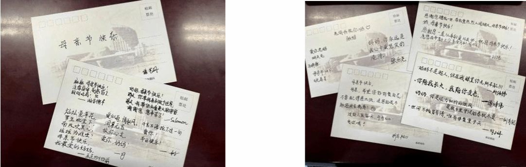 身处信息化的时代,手写贺卡似乎成了一种奢望。然而,正是这些简单而纯粹的文字,最能触动人心。同学们用心地挑选贺卡,一笔一划地写下对母亲的祝福和感激。这些贺卡或许并不华丽,但每一笔都充满了深深的爱意。