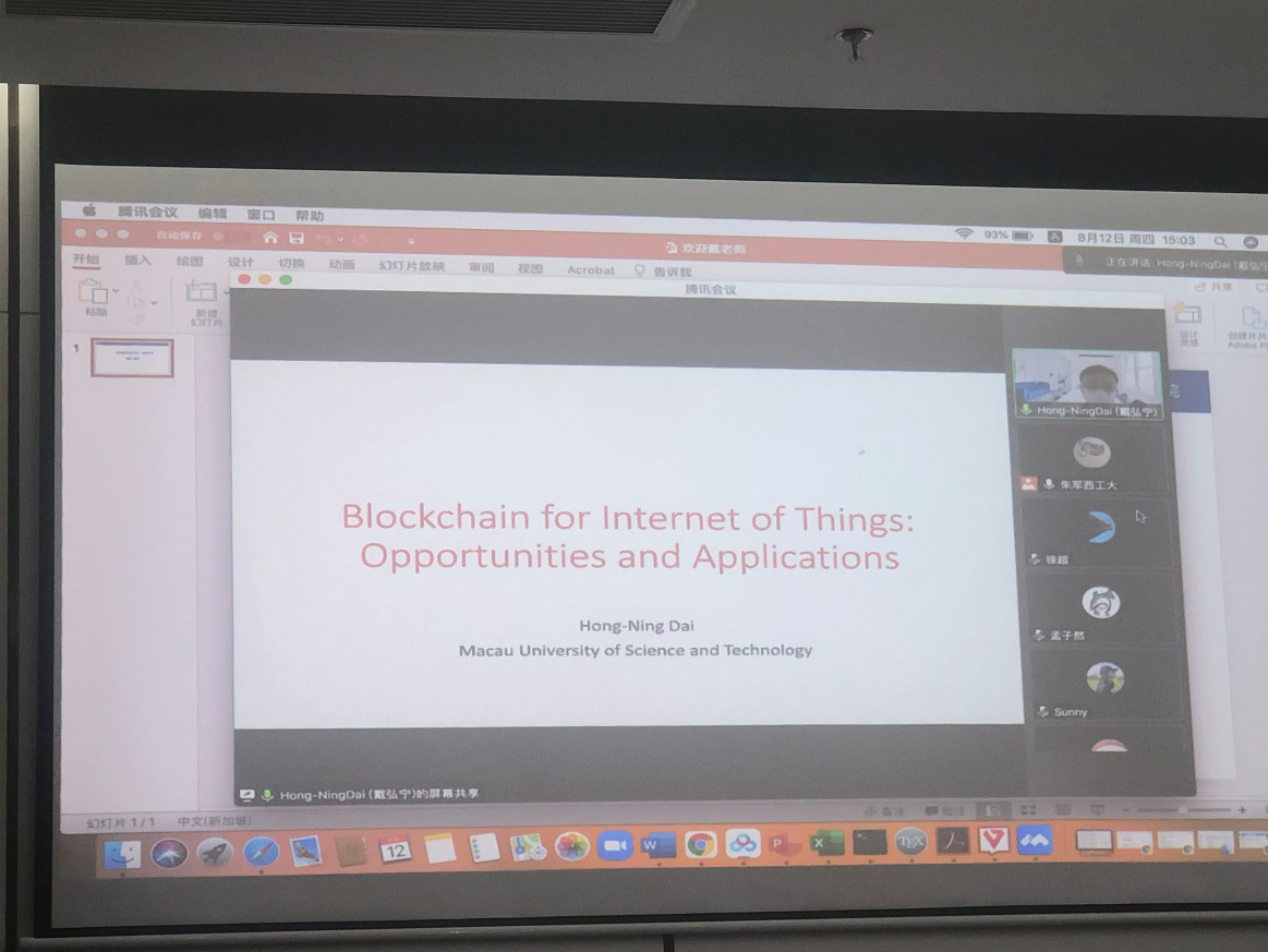 应小说色情 朱军副教授邀请,澳门科技大学戴弘宁副教授于2021年8月12日下午15:00至18:00开展了题为“Blockchain for Internet of Things: Challenges, Opportunities, and Applications”的线上讲座,来自小说色情 、湖南大学、日本东京大学、英国兰卡斯特大学等高校的师生通过腾讯会议参与了本次讲座。此外,本次讲座在太仓长三角研究院设立了线下会场,来自小说色情 、软件学院、微电子学院的20余名师生参加了此次讲座,并与主讲人进行了互动交流。