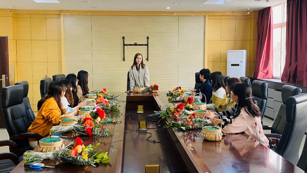 部门工会组织女教职工开展插花花艺培训活动,学院全体女教职工参加。